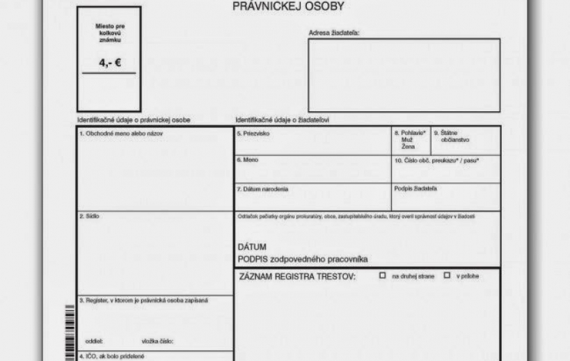 - 4 eurá za vydanie výpisu z registra trestov (kolkový poplatok),